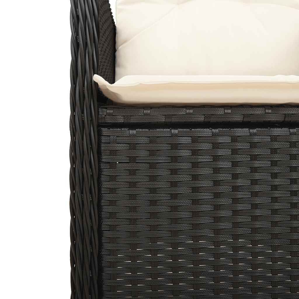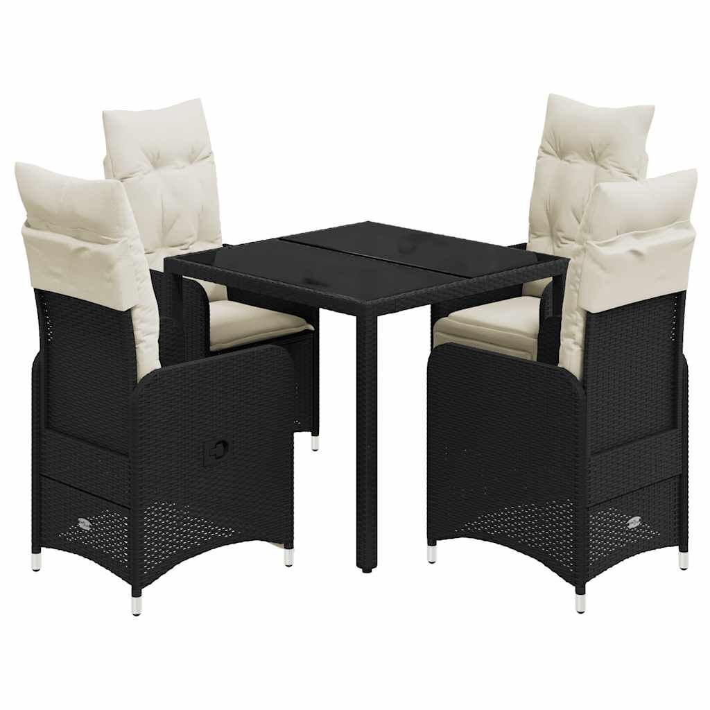 Enjoy a coffee or have a chat with your family and friends in the garden, backyard, or on the balcony with this comfortable bistro set! Durable material: PE rattan, also known as poly rattan, is a strong, low-maintenance synthetic material that looks like natural rattan. It's lightweight, easy to clean, and commonly used for outdoor furniture due to its durability and weather-resistant properties.Adjustable backrest and footrest: This garden seat has a handle. You can adjust the backrest and footrest to any position by pulling the handle, and quickly return it to its original position.Comfortable seat experience: This outdoor furniture, complete with thickly padded cushions, offers a comfortable seating experience.Removable and washable cover: These seat cushions feature removable covers for easy washing and maintenance. The back cushions have a flap at the back for easy attachment to the backrests.Glass tabletop: The outdoor table's top is made from strong and durable tempered glass, making it easy to clean with a damp cloth and adding a touch of elegance to your outdoor space. Good to know:To make sure your outdoor furniture stays beautiful, we recommend protecting it with a waterproof cover.