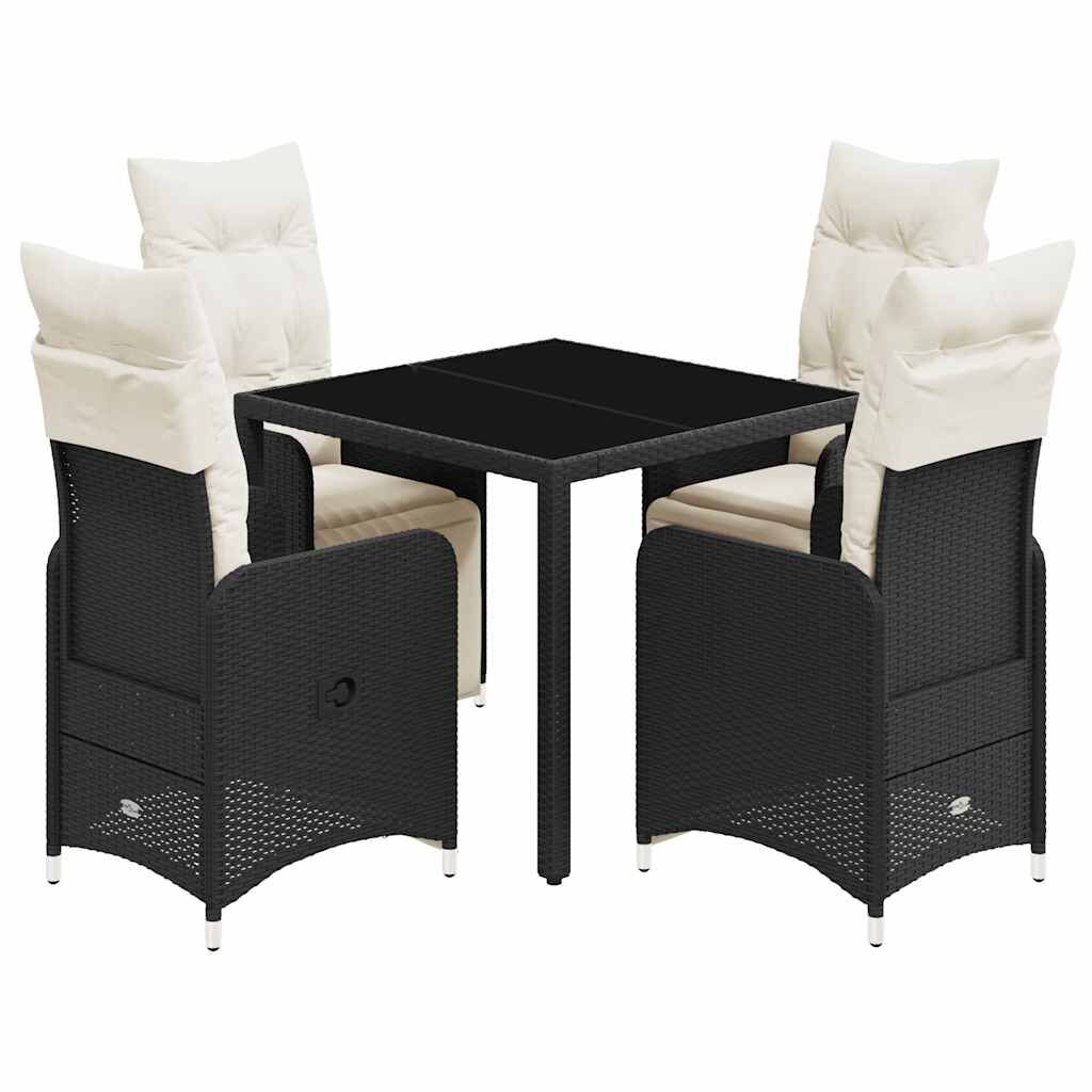 Enjoy a coffee or have a chat with your family and friends in the garden, backyard, or on the balcony with this comfortable bistro set! Durable material: PE rattan, also known as poly rattan, is a strong, low-maintenance synthetic material that looks like natural rattan. It's lightweight, easy to clean, and commonly used for outdoor furniture due to its durability and weather-resistant properties.Adjustable backrest and footrest: This garden seat has a handle. You can adjust the backrest and footrest to any position by pulling the handle, and quickly return it to its original position.Comfortable seat experience: This outdoor furniture, complete with thickly padded cushions, offers a comfortable seating experience.Removable and washable cover: These seat cushions feature removable covers for easy washing and maintenance. The back cushions have a flap at the back for easy attachment to the backrests.Glass tabletop: The outdoor table's top is made from strong and durable tempered glass, making it easy to clean with a damp cloth and adding a touch of elegance to your outdoor space. Good to know:To make sure your outdoor furniture stays beautiful, we recommend protecting it with a waterproof cover.