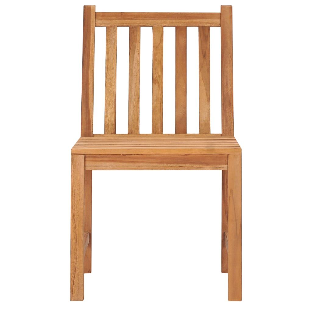 This wooden garden dining set adds a touch of natural charm to your kitchen, garden, or patio. Constructed from extremely durable teak hardwood, this piece of teak furniture has been seasoned, kiln-dried, and then fine sanded to give a very smooth appearance. Teak wood is known for its exceptional strength and weather resistance, making it far more suitable for garden furniture than any other kind of wood. Teak wood is the perfect choice if you want to purchase a long-lasting piece of garden furniture. A beautiful water-based finish is applied to give the wood a warm colour. Thanks to the extra thick tabletop and big legs, this solid wood table is very durable and can comfortably accommodate your guests. The chairs feature a refined look that can instantly blend into any living space. With its water-resistant feature and classic look, you can place this furniture set anywhere around your sweet home – indoors or outside!