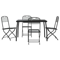 Enjoy a nice meal or afternoon tea in your outdoor space with this garden dining set! Featuring an elegant design, it will become the focal point of your garden and patio! Sturdy frame: The metal frame makes this garden furniture set sturdy and durable, providing a lifelong service.Mesh design: This dining set, with the mesh design, can effectively avoid water accumulation, adding a stylish appearance to your outdoor living space.Practical tabletop: The sturdy tabletop of the garden dining table is perfect for placing meals, drinks, and other decorative items.Easy movement: These garden dining chairs are foldable to save space when not in use. You can easily carry them with you anywhere on your outdoor trips. Good to know:To make sure your outdoor furniture stays beautiful, we recommend protecting it with a waterproof cover.