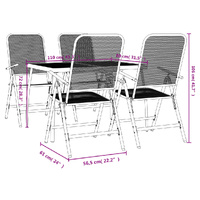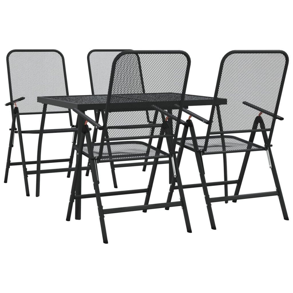 Enjoy a nice meal or afternoon tea in your outdoor space with this garden dining set! Featuring an elegant design, it will become the focal point of your garden and patio! Sturdy frame: The metal frame makes this garden furniture set sturdy and durable, providing a lifelong service.Mesh design: This dining set, with the mesh design, can effectively avoid water accumulation, adding a stylish appearance to your outdoor living space.Practical tabletop: The sturdy tabletop of the garden dining table is perfect for placing meals, drinks, and other decorative items.Easy movement: These garden dining chairs are foldable to save space when not in use. You can easily carry them with you anywhere on your outdoor trips.Adjustable backrest: These reclining chairs have backrests that recline in 7 settings, so you can always find the most comfortable position. Good to know:To make sure your outdoor furniture stays beautiful, we recommend protecting it with a waterproof cover.