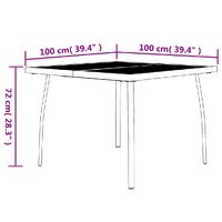 This trendy garden dining set, featuring an elegant and contemporary design, is a perfect choice for relaxing in your garden. Sturdy material: Steel is an exceptionally hard and strong material. It offers sturdiness and stability. The powder coating and e-coating on steel create a protective layer against wear and corrosion.Stable frame: The powder-coated and e-coated steel frame ensures the dining set's sturdiness and stability.Adjustable and foldable function: The backrests of the dining chairs are adjustable in 6 positions as per your comfort. You can fold them away to save space when not in use.Practical table: The sturdy tabletop of the dining table is perfect for placing meals, drinks, and other decorative items.Mesh design: The outdoor dining set with a mesh design looks simple and timeless and is suitable for balconies, porches, gardens, patios, etc. Note:To make sure your outdoor furniture stays beautiful, we recommend protecting it with a waterproof cover.