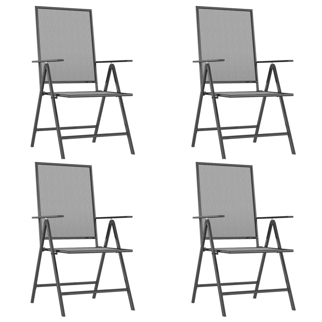 This trendy garden dining set, featuring an elegant and contemporary design, is a perfect choice for relaxing in your garden. Sturdy material: Steel is an exceptionally hard and strong material. It offers sturdiness and stability. The powder coating and e-coating on steel create a protective layer against wear and corrosion.Stable frame: The powder-coated and e-coated steel frame ensures the dining set's sturdiness and stability.Adjustable and foldable function: The backrests of the dining chairs are adjustable in 6 positions as per your comfort. You can fold them away to save space when not in use.Practical table: The sturdy tabletop of the dining table is perfect for placing meals, drinks, and other decorative items.Mesh design: The outdoor dining set with a mesh design looks simple and timeless and is suitable for balconies, porches, gardens, patios, etc. Note:To make sure your outdoor furniture stays beautiful, we recommend protecting it with a waterproof cover.