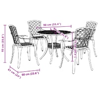 This garden dining set, with an elegant and contemporary design, will be a great choice for dining or relaxing in the garden. Sturdy and durable frame: The garden dining set, made of cast aluminium, is sturdy and durable enough to provide long-term service. The rust-resistant and weather-resistant material makes it ideal for outdoor use all year round.Comfortable seating experience: The high backrest and seat with a hollow design are comfortable and stylish. Ergonomically curved armrests can effectively relax your arms as well.Practical design: This garden table has an umbrella hole that can perfectly accommodate your umbrella to protect you from sun or rain.Wide applications: The garden dining set is perfect for any front porch, patio, backyard, lawn, garden, etc. Good to know:To make sure your outdoor furniture stays beautiful, we recommend protecting it with a waterproof cover.