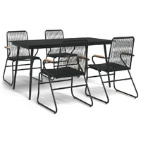 Enjoy a cosy coffee time in your outdoor space with this garden dining set! This dining set is a perfect addition to your garden and terrace, creating a lasting impression! Durable PVC rattan: PVC rattan is a sturdier and more durable option for natural rattan. PVC is known for its weather-resistant qualities like protection from UV rays and resistance to moisture.Sturdy frame: The steel frame of the garden dining set ensures sturdiness and stability.Sturdy tabletop: The sturdy tabletop of the dinner table is perfect for placing meals, drinks, vases, fruit bowls, or other decorative items.Comfortable seat experience: With a backrest and armrests, the garden seating allows you to sit back comfortably after a long day. Note:To make sure your outdoor furniture stays beautiful, we recommend protecting it with a waterproof cover.