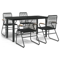 Enjoy a cosy coffee time in your outdoor space with this garden dining set! This dining set is a perfect addition to your garden and terrace, creating a lasting impression! Durable PVC rattan: PVC rattan is a sturdier and more durable option for natural rattan. PVC is known for its weather-resistant qualities like protection from UV rays and resistance to moisture.Sturdy frame: The steel frame of the garden dining set ensures sturdiness and stability.Sturdy tabletop: The sturdy tabletop of the dinner table is perfect for placing meals, drinks, vases, fruit bowls, or other decorative items.Comfortable seat experience: With a backrest and armrests, the garden seating allows you to sit back comfortably after a long day. Note:To make sure your outdoor furniture stays beautiful, we recommend protecting it with a waterproof cover.