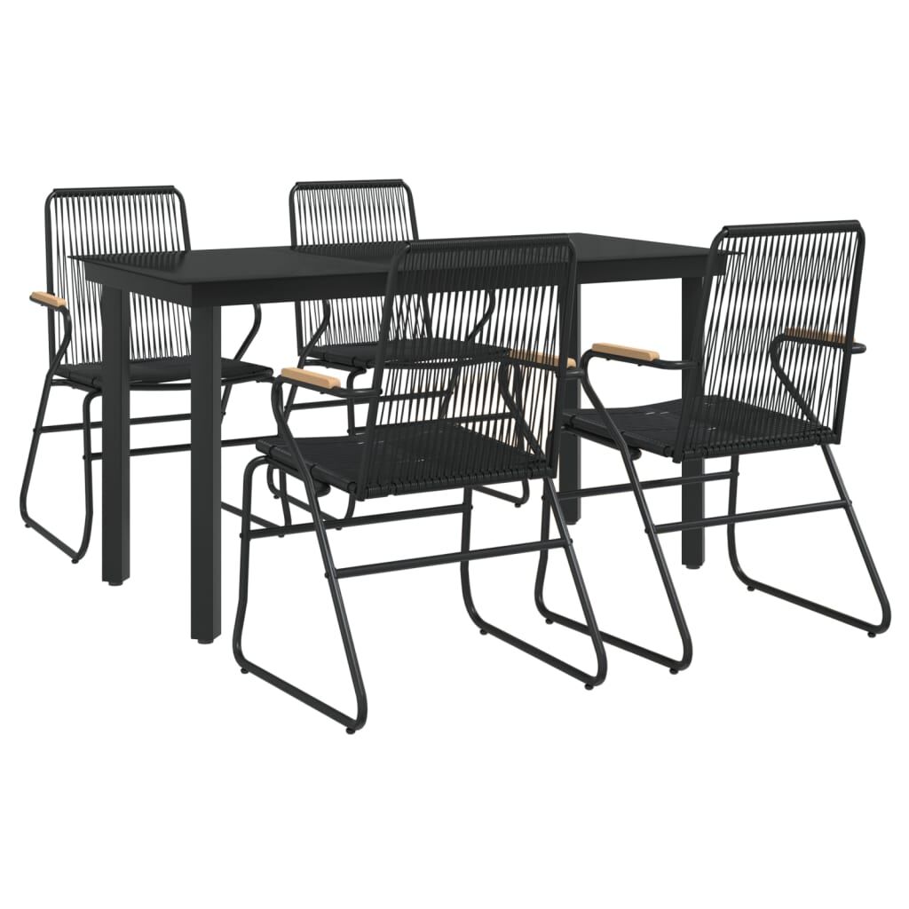 Relax and enjoy a lovely afternoon tea or any meal with your family and friends around this garden dining set! Durable PVC rattan: PVC rattan is a sturdier and more durable option for natural rattan. PVC is known for its weather-resistant qualities like protection from UV rays and resistance to moisture.Sturdy frame: The steel frames of the dining set ensure sturdiness and stability.Practical tabletop: The smooth glass tabletop is easy to clean with a damp cloth and is perfect for placing meals, drinks and other decorative items.Comfortable seating: The dining chair is designed with a backrest and armrests to offer you a comfortable seating experience. Note:To make sure your outdoor furniture stays beautiful, we recommend protecting it with a waterproof cover.