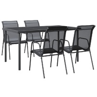 Enjoy a nice meal or afternoon tea in your outdoor space with this garden dining set! Featuring an elegant design, it will become the focal point of your garden and patio! Stable frame: The armchairs and table have a powder-coated steel construction, making them sturdy and stable.Durable material: Thanks to the strong textilene fabric, these outdoor chairs are weather-resistant and easy to clean.Sturdy tabletop: The tabletop is made of tempered glass, making it easy to clean. Additionally, the tabletop is perfect for placing snacks, drinks, vases, fruit bowls, or other decorative items.Comfortable seating experience: Designed with a curved backrest and armrests, the garden armchair has a more ergonomic shape for maximum comfort. Good to know:To make sure your outdoor furniture stays beautiful, we recommend protecting it with a waterproof cover.