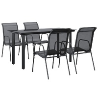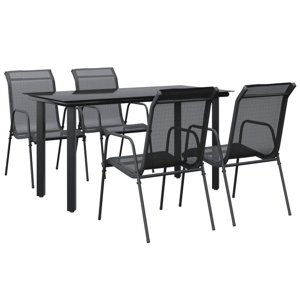 Enjoy a nice meal or afternoon tea in your outdoor space with this garden dining set! Featuring an elegant design, it will become the focal point of your garden and patio! Stable frame: The armchairs and table have a powder-coated steel construction, making them sturdy and stable.Durable material: Thanks to the strong textilene fabric, these outdoor chairs are weather-resistant and easy to clean.Sturdy tabletop: The tabletop is made of tempered glass, making it easy to clean. Additionally, the tabletop is perfect for placing snacks, drinks, vases, fruit bowls, or other decorative items.Comfortable seating experience: Designed with a curved backrest and armrests, the garden armchair has a more ergonomic shape for maximum comfort. Good to know:To make sure your outdoor furniture stays beautiful, we recommend protecting it with a waterproof cover.