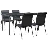 Enjoy a nice meal or afternoon tea in your outdoor space with this garden dining set! Featuring an elegant design, it will become the focal point of your garden and patio! Stable frame: The armchairs and table have a powder-coated steel construction, making them sturdy and stable.Durable material: Thanks to the strong textilene fabric with padding, these outdoor chairs are highly comfortable, weather-resistant and easy to clean.Sturdy tabletop: The tabletop is made of tempered glass, making it easy to clean. Additionally, the tabletop is perfect for placing snacks, drinks, vases, fruit bowls, or other decorative items.Comfortable seating experience: Designed with a curved backrest and armrests, the garden armchair has a more ergonomic shape for maximum comfort. Good to know:To make sure your outdoor furniture stays beautiful, we recommend protecting it with a waterproof cover.