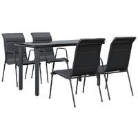 Enjoy a nice meal or afternoon tea in your outdoor space with this garden dining set! Featuring an elegant design, it will become the focal point of your garden and patio! Stable frame: The armchairs and table have a powder-coated steel construction, making them sturdy and stable.Durable material: Thanks to the strong textilene fabric with padding, these outdoor chairs are highly comfortable, weather-resistant and easy to clean.Sturdy tabletop: The tabletop is made of tempered glass, making it easy to clean. Additionally, the tabletop is perfect for placing snacks, drinks, vases, fruit bowls, or other decorative items.Comfortable seating experience: Designed with a curved backrest and armrests, the garden armchair has a more ergonomic shape for maximum comfort. Good to know:To make sure your outdoor furniture stays beautiful, we recommend protecting it with a waterproof cover.