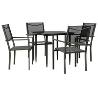 Enjoy a nice meal or afternoon tea in your outdoor space with this garden dining set! Featuring an elegant design, it will become the focal point of your garden and patio! Stable frame: The armchairs and table have a powder-coated steel construction, making them sturdy and stable.Durable material: Thanks to the strong textilene fabric, these outdoor chairs are weather-resistant and easy to clean.Sturdy tabletop: The tabletop is made of tempered glass, making it easy to clean. Additionally, the tabletop is perfect for placing snacks, drinks, vases, fruit bowls, or other decorative items.Comfortable seating experience: The ergonomic backrest and armrests give you a better seating experience. Good to know:To make sure your outdoor furniture stays beautiful, we recommend protecting it with a waterproof cover.