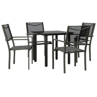 Enjoy a nice meal or afternoon tea in your outdoor space with this garden dining set! Featuring an elegant design, it will become the focal point of your garden and patio! Stable frame: The armchairs and table have a powder-coated steel construction, making them sturdy and stable.Durable material: Thanks to the strong textilene fabric, these outdoor chairs are weather-resistant and easy to clean.Sturdy tabletop: The tabletop is made of tempered glass, making it easy to clean. Additionally, the tabletop is perfect for placing snacks, drinks, vases, fruit bowls, or other decorative items.Comfortable seating experience: The ergonomic backrest and armrests give you a better seating experience. Good to know:To make sure your outdoor furniture stays beautiful, we recommend protecting it with a waterproof cover.