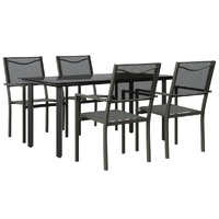 5 Piece Garden Dining Set Black Steel and Textilene