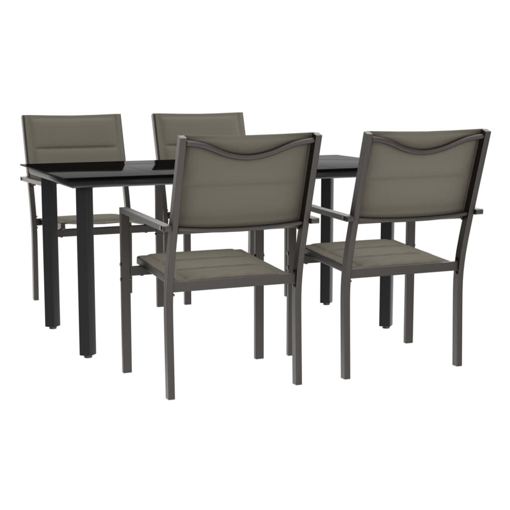 Enjoy a nice meal or afternoon tea in your outdoor space with this garden dining set! Featuring an elegant design, it will become the focal point of your garden and patio! Stable frame: The armchairs and table have a powder-coated steel construction, making them sturdy and stable.Durable material: Thanks to the strong textilene fabric with padding, these outdoor chairs are highly comfortable, weather-resistant and easy to clean.Sturdy tabletop: The tabletop is made of tempered glass, making it easy to clean. Additionally, the tabletop is perfect for placing snacks, drinks, vases, fruit bowls, or other decorative items.Comfortable seating experience: The ergonomic backrest and armrests give you a better seating experience. Good to know:To make sure your outdoor furniture stays beautiful, we recommend protecting it with a waterproof cover.