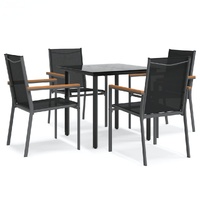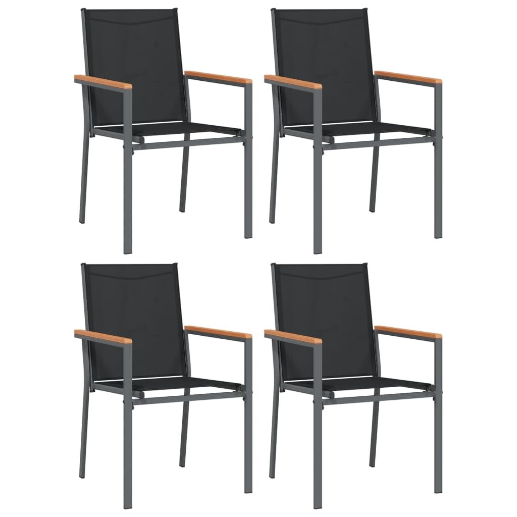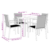 Relax and enjoy a lovely afternoon tea or any meal with your family and friends around this garden dining set! Durable material: Textilene fabric allows air to flow freely through it while being resistant to UV rays. This makes textilene ideal for hot weather. As a durable and strong material, it is highly resistant to tears, punctures.Sturdy and stable frame: The steel frames make the dining set sturdy and stable for daily outdoor use.Practical tabletop: The smooth tabletop of the dining table is made of tempered glass which is easy to clean with a damp cloth. Additionally, it offers excellent support for holding your meals, drinks, and other decorative items.Comfortable seating: The dining chair is designed with a backrest and armrests to offer you a comfortable seating experience. Note:To make sure your outdoor furniture stays beautiful, we recommend protecting it with a waterproof cover.