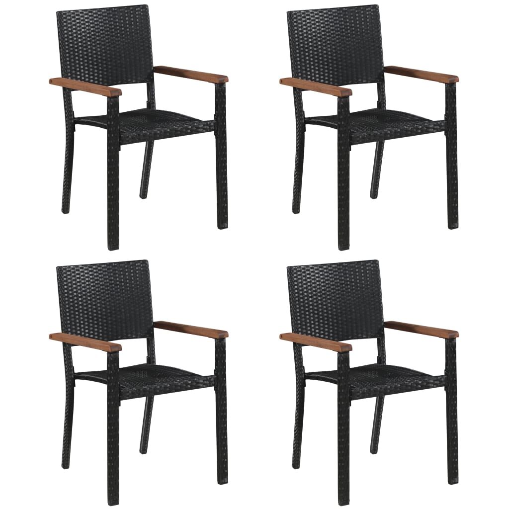 Create a compelling and cohesive aesthetic in your outdoor space with this garden dining set! This outdoor table is made of solid acacia wood, making it sturdy and stable. The oil-finished surface also makes the table easy to clean with a damp cloth. Additionally, the curved legs contribute to its stylish design. Featuring a steel frame covered with weather-resistant PE rattan, these dining chairs are sturdy and easy to clean. Note: In order to extend the life of your outdoor furniture, we recommend you to clean it regularly and do not leave it outdoors without protection unnecessarily.Clean: Use a mild soap solutionStoring: If possible, store in a cool, dry place indoors. If the product is stored outdoors, protect it with a waterproof cover. Wipe and dry the excess water or snow from flat surfaces after a rain or snowfall. Allow sufficient air circulation to avoid moisture-related damage.