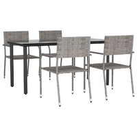 Enjoy a nice meal or afternoon tea in your outdoor space with this garden dining set! Featuring an elegant design, it will become the focal point of your garden and patio! Durable material: PE rattan, also known as poly rattan, is weather resistant and easy to clean. It remains beautiful on the outside for a long period of time. It offers great quality, convenience and an aesthetic look.Sturdy frame: The powder-coated steel frames make the outdoor dining set sturdy and stable for daily outdoor use.Practical tabletop: The smooth tabletop of the dining table is made of tempered glass which is easy to clean with a damp cloth. Additionally, the sturdy tabletop is perfect for placing meals, drinks, and other decorative items.Flexible design: Thanks to the lightweight construction, these outdoor chairs are easy to move and can be stacked to save space when not in use. Good to know:To make sure your outdoor furniture stays beautiful, we recommend protecting it with a waterproof cover.