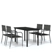 Enjoy a nice meal or afternoon tea in your outdoor space with this garden dining set! Featuring an elegant design, it will become the focal point of your garden and patio! The practical outdoor dining set has a steel frame, making it strong and sturdy. The garden chairs are made of water-resistant and maintenance-free PE rattan, making them perfect for outdoor use. Meanwhile, these outdoor chairs are lightweight and can be stacked to save space when not in use. In addition, the smooth glass tabletop is easy to clean with a damp cloth and excellent for placing meals, drinks and other decorative items. Note: In order to extend the life of your outdoor furniture, we recommend you to clean it regularly and do not leave it outdoors without protection unnecessarily.Clean: Use a mild soap solution.Storing: If possible, store in a cool, dry place indoors. If the product is stored outdoors, protect it with a waterproof cover. Wipe and dry the excess water or snow from flat surfaces after a rain or snowfall. Allow sufficient air circulation to avoid moisture-related damage.