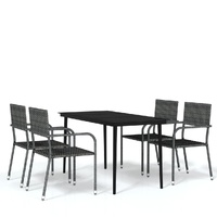 Enjoy a nice meal or afternoon tea in your outdoor space with this garden dining set! Featuring an elegant design, it will become the focal point of your garden and patio! The practical outdoor dining set has a steel frame, making it strong and sturdy. The garden chairs are made of water-resistant and maintenance-free PE rattan, making them perfect for outdoor use. Meanwhile, these outdoor chairs are lightweight and can be stacked to save space when not in use. In addition, the smooth glass tabletop is easy to clean with a damp cloth and excellent for placing meals, drinks and other decorative items. Note: In order to extend the life of your outdoor furniture, we recommend you to clean it regularly and do not leave it outdoors without protection unnecessarily.Clean: Use a mild soap solution.Storing: If possible, store in a cool, dry place indoors. If the product is stored outdoors, protect it with a waterproof cover. Wipe and dry the excess water or snow from flat surfaces after a rain or snowfall. Allow sufficient air circulation to avoid moisture-related damage.