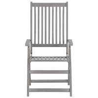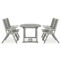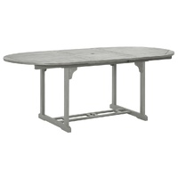This practical yet stylish garden dining set is perfectly suitable for outdoor use and ensures an attractive focal point for your garden, terrace or patio. Both table and chairs are made of solid acacia wood with a grey wash. Therefore, they are weather-resistant, durable and easy to clean with a damp cloth. Due to the sturdy wooden structure, this set is very stable and safe. The dining table can be extended from 150 to 200 cm in length when extra space is required. The chair is designed with a 5-position reclining backrest for various needs. In addition, the chairs can be easily folded away for easy storage and transportation when not in use.