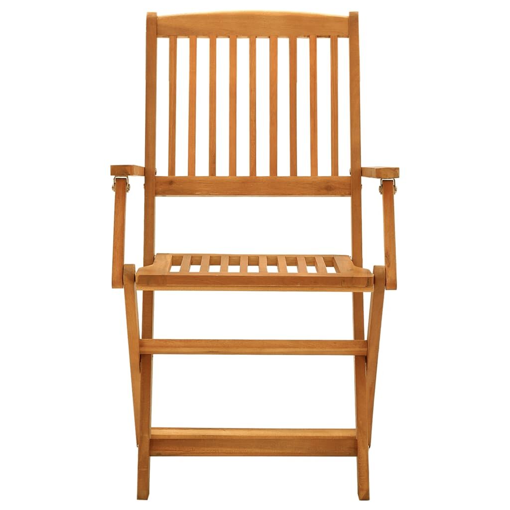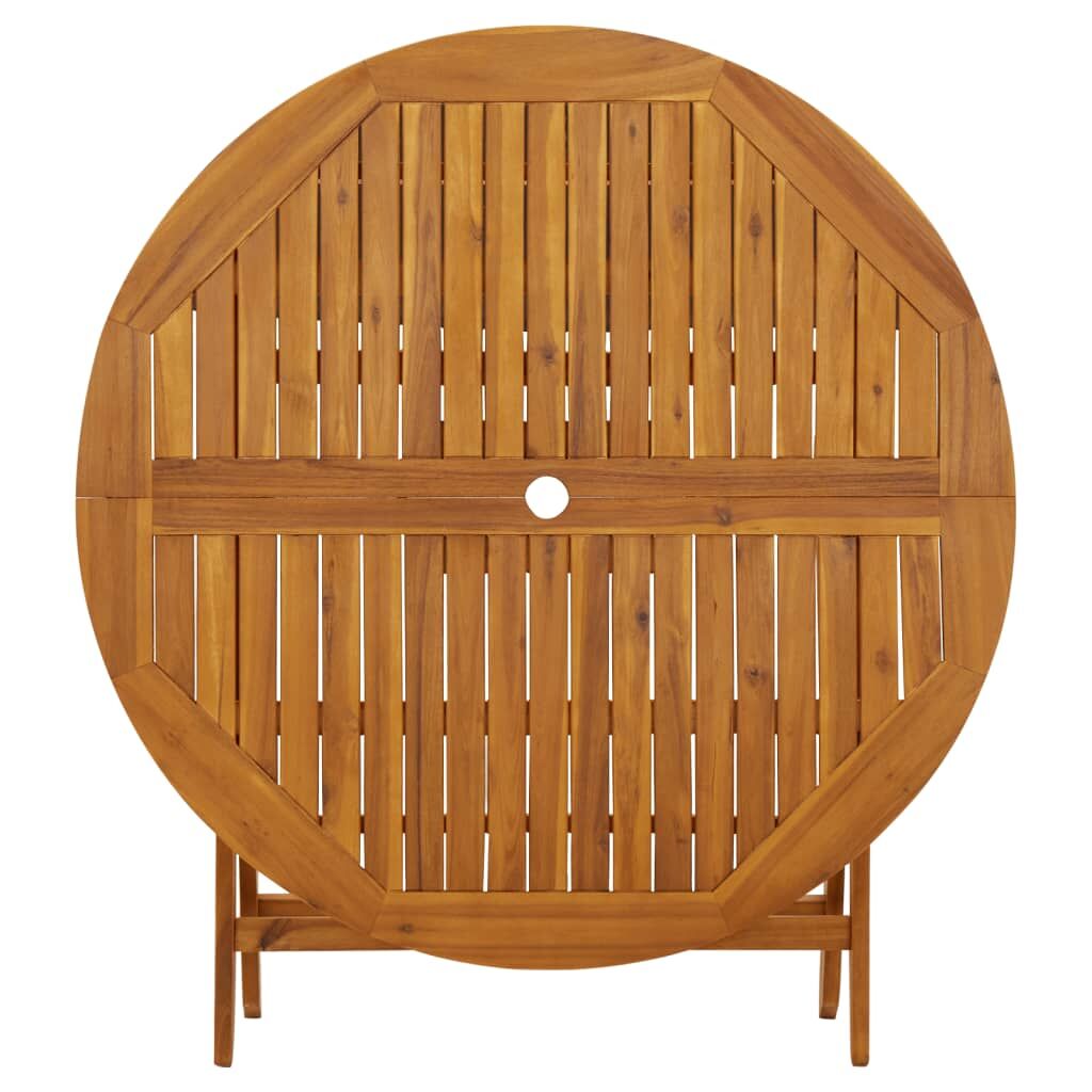 This wooden garden dining set, with an elegant and retro design, will be a great choice for dining or relaxing in the garden. Solid acacia wood: Solid acacia wood is a beautiful natural material. Acacia wood is a tropical hardwood, which is dense, sturdy, and durable. Made of acacia wood, the dining set is suitable for indoor and outdoor use.Practical table: This dining table provides you with a sturdy tabletop. You can place your snacks, drinks and any of your favourite decorations. There is a parasol hole in the table top so you can easily attach a parasol to create a shady spot.Foldable design: This dining set can be folded to save space when not in use.Easy to clean surface: The oil-finished surface makes this garden furniture set easy to clean with a damp cloth. Good to know:To make sure your outdoor furniture stays beautiful, we recommend protecting it with a waterproof cover.