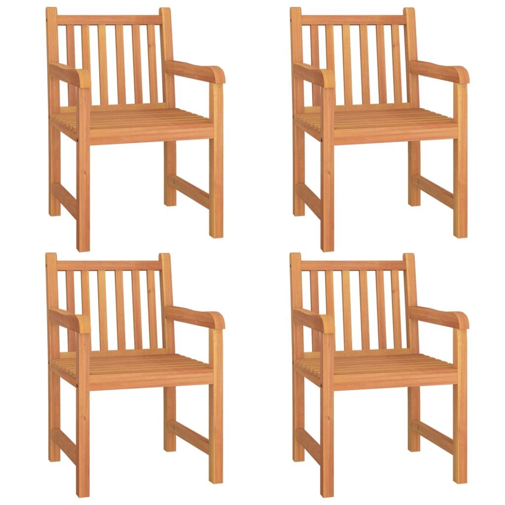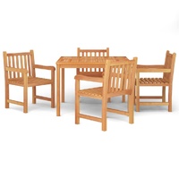 This wooden garden dining set, with an elegant and contemporary design, is a great choice for dining or relaxing in the garden. Solid teak wood: Solid teak wood is a beautiful natural material. It has been seasoned, kiln dried and then fine sanded to give a very smooth appearance. Teak wood is known for its exceptional strength and weather resistance.Sturdy tabletop: This dinner table provides you with a sturdy tabletop. You can place your snacks, drinks, and any of your favourite decorations.Water-resistant feature: With its water-resistant feature and classic look, you can place the garden furniture set anywhere around your sweet home, whether indoors or outdoors!Comfortable seating experience: Each dinner chair has a backrest, which makes it highly comfortable to sit on. Note:Each product comes with an assembly manual in the box for easy assembly.In order to extend the life of your outdoor furniture, we recommend you to protect it with a waterproof cover.