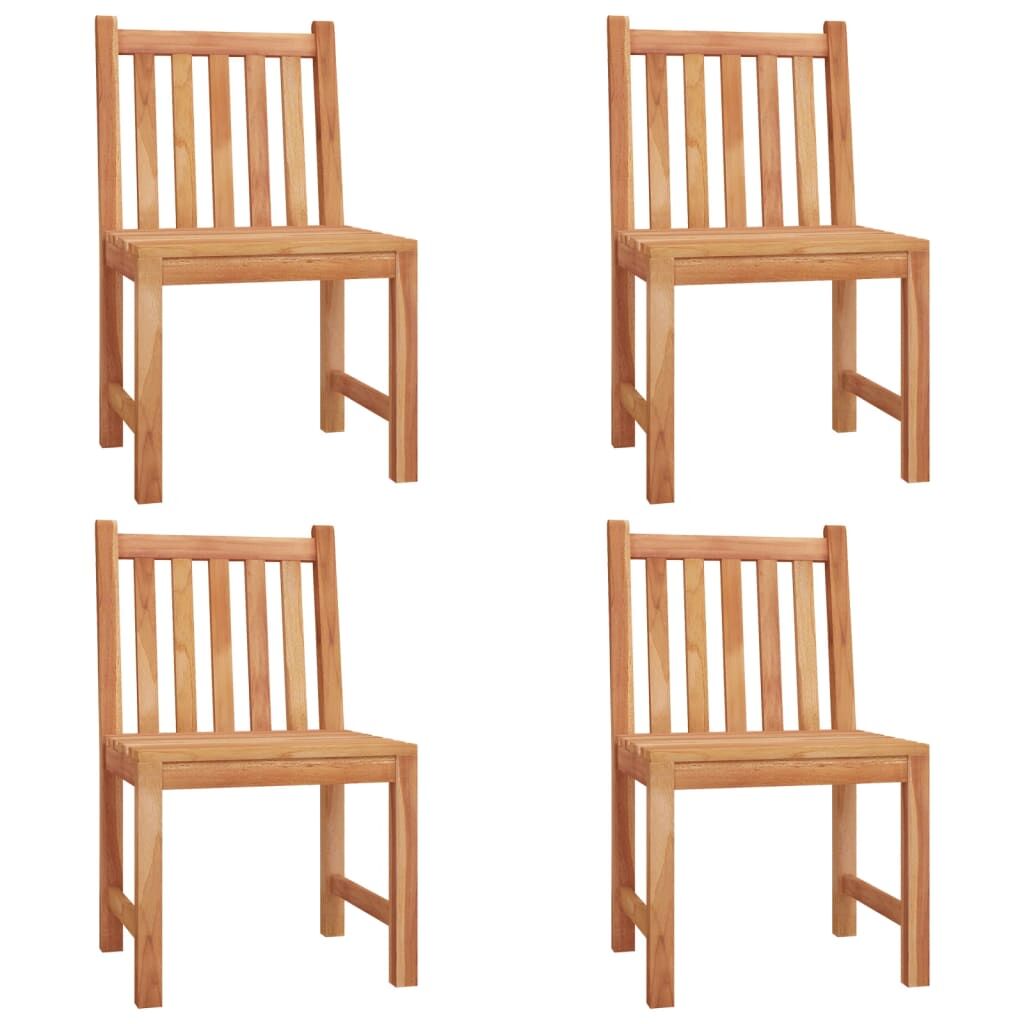 This wooden garden dining set, with an elegant and contemporary design, is a great choice for dining or relaxing in the garden. Solid teak wood: Solid teak wood is a beautiful natural material. It has been seasoned, kiln dried and then fine sanded to give a very smooth appearance. Teak wood is known for its exceptional strength and weather resistance.Sturdy tabletop: This dinner table provides you with a sturdy tabletop. You can place your snacks, drinks, and any of your favourite decorations.Water-resistant feature: With its water-resistant feature and classic look, you can place the garden furniture set anywhere around your sweet home, whether indoors or outdoors!Comfortable seating experience: Each dinner chair has a backrest, which makes it highly comfortable to sit on. Note:Each product comes with an assembly manual in the box for easy assembly.In order to extend the life of your outdoor furniture, we recommend you to protect it with a waterproof cover.