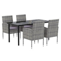 Enjoy a nice meal or afternoon tea in your outdoor space with this garden dining set! Weather-resistant material: PE rattan, also known as poly rattan, is weather resistant and easy to clean. It remains beautiful on the outside for a long period of time. It offers great quality, convenience and an aesthetic look.Sturdy frame: The powder-coated steel frames make the outdoor dining set sturdy and stable for daily outdoor use.Practical tabletop: The smooth tabletop of the dining table is made of tempered glass which is easy to clean with a damp cloth. Additionally, the sturdy tabletop is perfect for placing meals, drinks, and other decorative items.Comfortable design: Designed with curved backrests and armrests, these outdoor chairs provide maximum comfort.Extra comfort: The thickly padded cushions provide ultimate comfort during your sitting time. Note:In order to extend the life of your outdoor furniture, we recommend you to protect it with a waterproof cover.Each product comes with an assembly manual in the box for easy assembly.