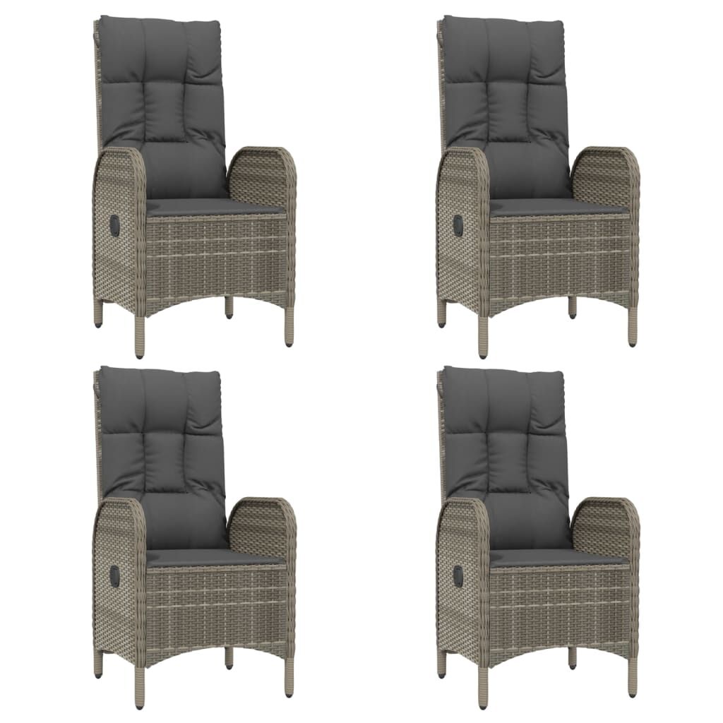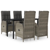 This trendy garden dining set, featuring an elegant and contemporary design, is a great choice for dining or relaxing in your garden. Weather-resistant material: PE rattan, also known as poly rattan, is weather resistant and easy to clean. It remains beautiful on the outside for a long period of time. It offers great quality, convenience and an aesthetic look.Sturdy frame: The powder-coated steel frames make the outdoor dining set sturdy and stable for daily outdoor use.Practical tabletop: The smooth tabletop of the garden table is made of tempered glass which is easy to clean with a damp cloth. Additionally, the sturdy tabletop is perfect for placing meals, drinks, and other decorative items.Reclining function: The garden chairs are specially designed with a reclining function so that you can adjust the backrest as per your comfort.Comfortable seat experience: The backrest adds extra seating comfort for the garden chair. Also, the thickly padded cushions provide comfort for your sitting time. Good to know:To make assembly as easy as possible, each product is delivered with a manual. Note:To make sure your outdoor furniture stays beautiful, we recommend protecting it with a waterproof cover.