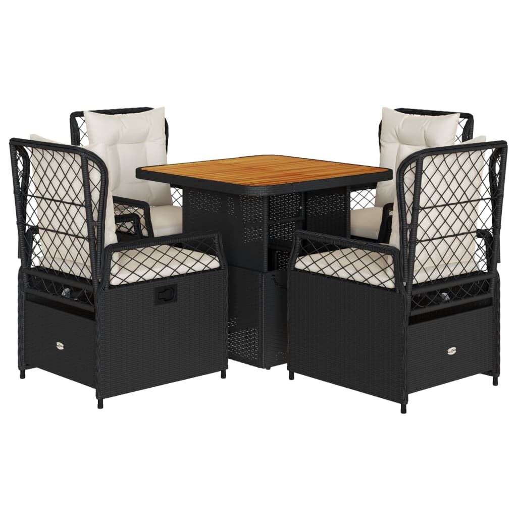 This garden dining set is a great choice for al fresco dining or just relaxing in the garden, backyard, or on the patio. Durable material: PE rattan, also known as poly rattan, is a strong, low-maintenance synthetic material that looks like natural rattan. It's lightweight, easy to clean, and commonly used for outdoor furniture due to its durability and weather-resistant properties.Adjustable backrest: This garden seat has a handle. You can adjust the backrest to any position by pulling the handle, and quickly return it to its original position.Removable and washable cover: The seat cushion features a removable cover for easy washing and maintenance.Adjustable tabletop: The tabletop can be lifted to make the table higher, which transforms the outdoor table from a coffee table to a dining table. It's perfect for having guests over or eating meals outside.Stable and easy-to-clean tabletop: This garden table has an acacia wood top that is sturdy, durable, and easy to clean with a damp cloth. Good to know:To make sure your outdoor furniture stays beautiful, we recommend protecting it with a waterproof cover.