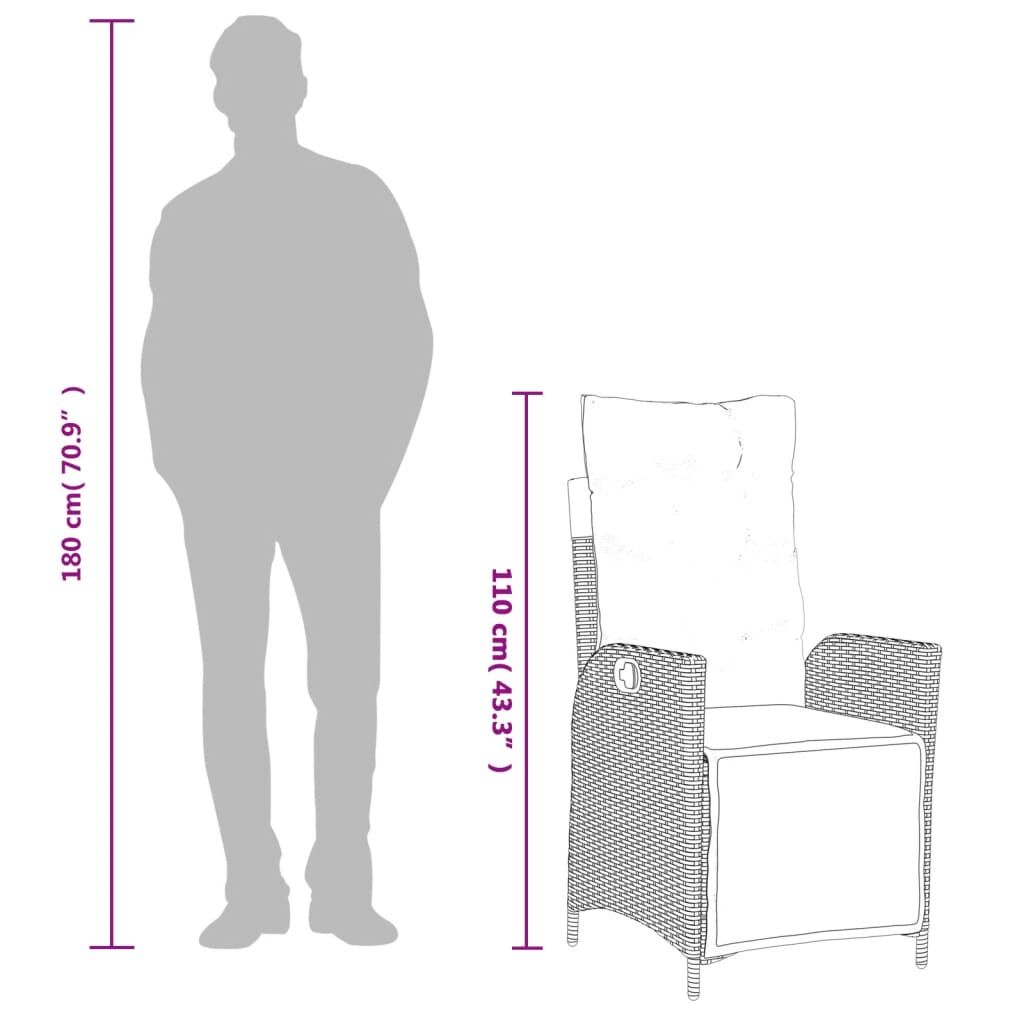 This garden dining set is a great choice for al fresco dining or just relaxing in the garden, backyard, or on the patio. Durable material: PE rattan, also known as poly rattan, is a strong, low-maintenance synthetic material that looks like natural rattan. It's lightweight, easy to clean, and commonly used for outdoor furniture due to its durability and weather-resistant properties.Adjustable backrest: This garden seat has a handle. You can adjust the backrest to any position by pulling the handle, and quickly return it to its original position.Adjustable tabletop: The tabletop can be lifted to make the table higher, which transforms the outdoor table from a coffee table to a dining table. It's perfect for having guests over or eating meals outside.Removable and washable cover: These seat cushions feature removable covers for easy washing and maintenance. The back cushions have a flap at the back for easy attachment to the backrests.Comfortable seat experience: This outdoor furniture, complete with thickly padded cushions, offers a comfortable seating experience. Good to know:To make sure your outdoor furniture stays beautiful, we recommend protecting it with a waterproof cover.