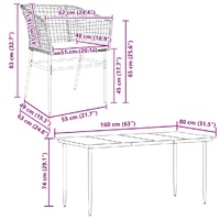 This garden dining set is a great choice for al fresco dining or just relaxing in the garden, backyard, or on the patio. Durable material: PE rattan, also known as poly rattan, is a strong, low-maintenance synthetic material that looks like natural rattan. It's lightweight, easy to clean, and commonly used for outdoor furniture due to its durability and weather-resistant properties.Robust and stable frame: The powder-coated steel frame is strong, stable, durable, and resistant to corrosion and harsh weather, ensuring long-lasting performance.Practical backrest and armrest: This garden chair features a backrest and two armrests that offer optimal support and comfort for users.Removable and washable cover: These seat cushions feature removable covers for easy washing and maintenance.Glass tabletop: The outdoor table's top is made from strong and durable tempered glass, making it easy to clean with a damp cloth and adding a touch of elegance to your outdoor space. Good to know:To make sure your outdoor furniture stays beautiful, we recommend protecting it with a waterproof cover.