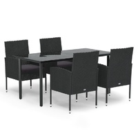 Enjoy a nice meal or afternoon tea in your outdoor space with this garden dining set! Weather-resistant material: PE rattan, also known as poly rattan, is weather resistant and easy to clean. It remains beautiful on the outside for a long period of time. It offers great quality, convenience and an aesthetic look.Sturdy frame: The powder-coated steel frames make the outdoor dining set sturdy and stable for daily outdoor use.Practical tabletop: The smooth tabletop of the dining table is made of tempered glass which is easy to clean with a damp cloth. Additionally, the sturdy tabletop is perfect for placing meals, drinks, and other decorative items.Comfortable design: Designed with curved backrests and armrests, these outdoor chairs provide maximum comfort.Extra comfort: The thickly padded cushions provide ultimate comfort during your sitting time. Note:In order to extend the life of your outdoor furniture, we recommend you to protect it with a waterproof cover.Each product comes with an assembly manual in the box for easy assembly.