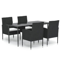 Enjoy a nice meal or afternoon tea in your outdoor space with this garden dining set! Weather-resistant material: PE rattan, also known as poly rattan, is weather resistant and easy to clean. It remains beautiful on the outside for a long period of time. It offers great quality, convenience and an aesthetic look.Sturdy frame: The powder-coated steel frames make the outdoor dining set sturdy and stable for daily outdoor use.Practical tabletop: The smooth tabletop of the dining table is made of tempered glass which is easy to clean with a damp cloth. Additionally, the sturdy tabletop is perfect for placing meals, drinks, and other decorative items.Comfortable design: Designed with curved backrests and armrests, these outdoor chairs provide maximum comfort.Extra comfort: The thickly padded cushions provide ultimate comfort during your sitting time. Note:In order to extend the life of your outdoor furniture, we recommend you to protect it with a waterproof cover.Each product comes with an assembly manual in the box for easy assembly.