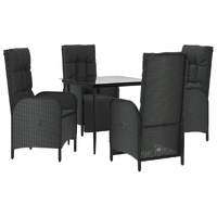 This trendy garden dining set, featuring an elegant and contemporary design, is a great choice for dining or relaxing in your garden. Weather-resistant material: PE rattan, also known as poly rattan, is weather resistant and easy to clean. It remains beautiful on the outside for a long period of time. It offers great quality, convenience and an aesthetic look.Sturdy frame: The powder-coated steel frames make the outdoor dining set sturdy and stable for daily outdoor use.Practical tabletop: The smooth tabletop of the garden table is made of tempered glass which is easy to clean with a damp cloth. Additionally, the sturdy tabletop is perfect for placing meals, drinks, and other decorative items.Reclining function: The garden chairs are specially designed with a reclining function so that you can adjust the backrest as per your comfort.Comfortable seat experience: The backrest adds extra seating comfort for the garden chair. Also, the thickly padded cushions provide comfort for your sitting time. Good to know:To make assembly as easy as possible, each product is delivered with a manual. Note:To make sure your outdoor furniture stays beautiful, we recommend protecting it with a waterproof cover.