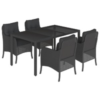 This garden dining set is a great choice for al fresco dining or just relaxing in the garden, backyard, or patio. Durable material: PE rattan, also known as poly rattan, is a strong, low-maintenance synthetic material that looks like natural rattan. It's lightweight, easy to clean, and commonly used for outdoor furniture due to its durability and weather-resistant properties.Comfortable seat experience: This outdoor furniture, complete with thickly padded cushions, offers a comfortable seating experience.Removable and washable cover: These seat cushions feature removable covers for easy washing and maintenance. The chair cushion covers have a flap at the back for easy attachment to the chairs.Glass tabletop: The outdoor table's top is made from strong and durable tempered glass, making it easy to clean with a damp cloth and adding a touch of elegance to your outdoor space.Robust and stable frame: The powder-coated steel frame ensures the garden furniture is strong and stable for daily outdoor use. Good to know:To make sure your outdoor furniture stays beautiful, we recommend protecting it with a waterproof cover.