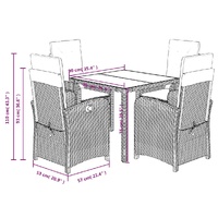 This garden dining set is a great choice for al fresco dining or just relaxing in the garden, backyard, or on the patio. Durable material: PE rattan, also known as poly rattan, is a strong, low-maintenance synthetic material that looks like natural rattan. It's lightweight, easy to clean, and commonly used for outdoor furniture due to its durability and weather-resistant properties.Adjustable backrest: This garden seat has a handle. You can adjust the backrest to any position by pulling the handle, and quickly return it to its original position.Comfortable seat experience: This outdoor furniture, complete with thickly padded cushions, offers a comfortable seating experience.Removable and washable cover: These seat cushions feature removable covers for easy washing and maintenance. The back cushions have a flap at the back for easy attachment to the backrests.Glass tabletop: The outdoor table's top is made from strong and durable tempered glass, making it easy to clean with a damp cloth and adding a touch of elegance to your outdoor space. Good to know:To make sure your outdoor furniture stays beautiful, we recommend protecting it with a waterproof cover.