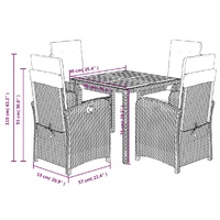 This garden dining set is a great choice for al fresco dining or just relaxing in the garden, backyard, or on the patio. Durable material: PE rattan, also known as poly rattan, is a strong, low-maintenance synthetic material that looks like natural rattan. It's lightweight, easy to clean, and commonly used for outdoor furniture due to its durability and weather-resistant properties.Adjustable backrest: This garden seat has a handle. You can adjust the backrest to any position by pulling the handle, and quickly return it to its original position.Comfortable seat experience: This outdoor furniture, complete with thickly padded cushions, offers a comfortable seating experience.Removable and washable cover: These seat cushions feature removable covers for easy washing and maintenance. The back cushions have a flap at the back for easy attachment to the backrests.Glass tabletop: The outdoor table's top is made from strong and durable tempered glass, making it easy to clean with a damp cloth and adding a touch of elegance to your outdoor space. Good to know:To make sure your outdoor furniture stays beautiful, we recommend protecting it with a waterproof cover.
