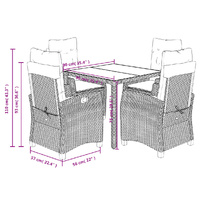 This garden dining set is a great choice for al fresco dining or just relaxing in the garden, backyard, or patio. Durable material: PE rattan, also known as poly rattan, is a strong, low-maintenance synthetic material that looks like natural rattan. It's lightweight, easy to clean, and commonly used for outdoor furniture due to its durability and weather-resistant properties. Adjustable backrest: This garden seat has a handle. You can adjust the backrest to any position by pulling the handle, and quickly return it to its original position.Glass tabletop: The outdoor table's top is made from strong and durable tempered glass, making it easy to clean with a damp cloth and adding a touch of elegance to your outdoor space. Comfortable seat experience: This outdoor furniture, complete with thickly padded cushions, offers a comfortable seating experience. Removable and washable cover: These seat cushions feature removable covers for easy washing and maintenance. Good to know:To make sure your outdoor furniture stays beautiful, we recommend protecting it with a waterproof cover.