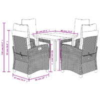 This garden dining set is a great choice for al fresco dining or just relaxing in the garden, backyard, or patio. Durable material: PE rattan, also known as poly rattan, is a strong, low-maintenance synthetic material that looks like natural rattan. It's lightweight, easy to clean, and commonly used for outdoor furniture due to its durability and weather-resistant properties. Adjustable backrest: This garden seat has a handle. You can adjust the backrest to any position by pulling the handle, and quickly return it to its original position.Glass tabletop: The outdoor table's top is made from strong and durable tempered glass, making it easy to clean with a damp cloth and adding a touch of elegance to your outdoor space. Comfortable seat experience: This outdoor furniture, complete with thickly padded cushions, offers a comfortable seating experience. Removable and washable cover: These seat cushions feature removable covers for easy washing and maintenance. Good to know:To make sure your outdoor furniture stays beautiful, we recommend protecting it with a waterproof cover.