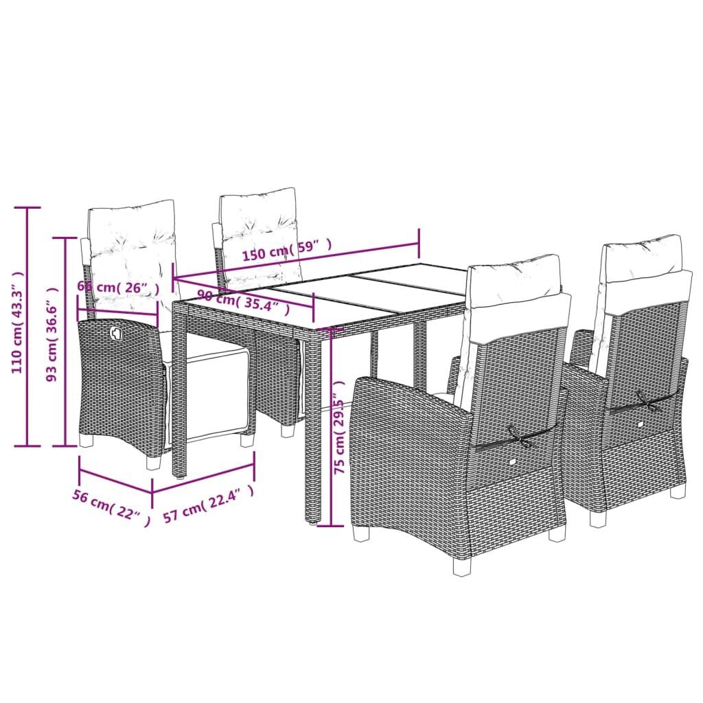 This garden dining set is a great choice for al fresco dining or just relaxing in the garden, backyard, or patio. Durable material: PE rattan, also known as poly rattan, is a strong, low-maintenance synthetic material that looks like natural rattan. It's lightweight, easy to clean, and commonly used for outdoor furniture due to its durability and weather-resistant properties.Adjustable backrest and footrest: This garden seat has a handle. You can adjust the backrest and footrest to any position by pulling the handle, and quickly return them to their original positions.Glass tabletop: The outdoor table's top is made from strong and durable tempered glass, making it easy to clean with a damp cloth and adding a touch of elegance to your outdoor space.Comfortable seat experience: This outdoor furniture, complete with thickly padded cushions, offers a comfortable seating experience.Removable and washable cover: These seat cushions feature removable covers for easy washing and maintenance. Good to know:To make sure your outdoor furniture stays beautiful, we recommend protecting it with a waterproof cover.