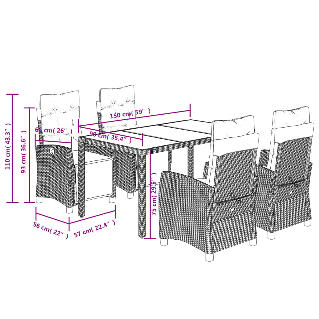 This garden dining set is a great choice for al fresco dining or just relaxing in the garden, backyard, or patio. Durable material: PE rattan, also known as poly rattan, is a strong, low-maintenance synthetic material that looks like natural rattan. It's lightweight, easy to clean, and commonly used for outdoor furniture due to its durability and weather-resistant properties.Adjustable backrest and footrest: This garden seat has a handle. You can adjust the backrest and footrest to any position by pulling the handle, and quickly return them to their original positions.Stable and easy-to-clean tabletop: This garden table has an acacia wood top that is sturdy, durable, and easy to clean with a damp cloth.Comfortable seat experience: This outdoor furniture, complete with thickly padded cushions, offers a comfortable seating experience.Removable and washable cover: These seat cushions feature removable covers for easy washing and maintenance. Good to know:To make sure your outdoor furniture stays beautiful, we recommend protecting it with a waterproof cover.