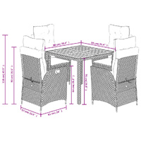 This garden dining set is a great choice for al fresco dining or just relaxing in the garden, backyard, or on the patio. Durable material: PE rattan, also known as poly rattan, is a strong, low-maintenance synthetic material that looks like natural rattan. It's lightweight, easy to clean, and commonly used for outdoor furniture due to its durability and weather-resistant properties.Adjustable backrest: This garden seat has a handle. You can adjust the backrest to any position by pulling the handle, and quickly return it to its original position.Comfortable seat experience: This outdoor furniture, complete with thickly padded cushions, offers a comfortable seating experience.Removable and washable cover: These seat cushions feature removable covers for easy washing and maintenance. The back cushions have a flap at the back for easy attachment to the backrests.Stable and easy-to-clean tabletop: This garden table has an acacia wood top that is sturdy, durable, and easy to clean with a damp cloth. Good to know: To make sure your outdoor furniture stays beautiful, we recommend protecting it with a waterproof cover.