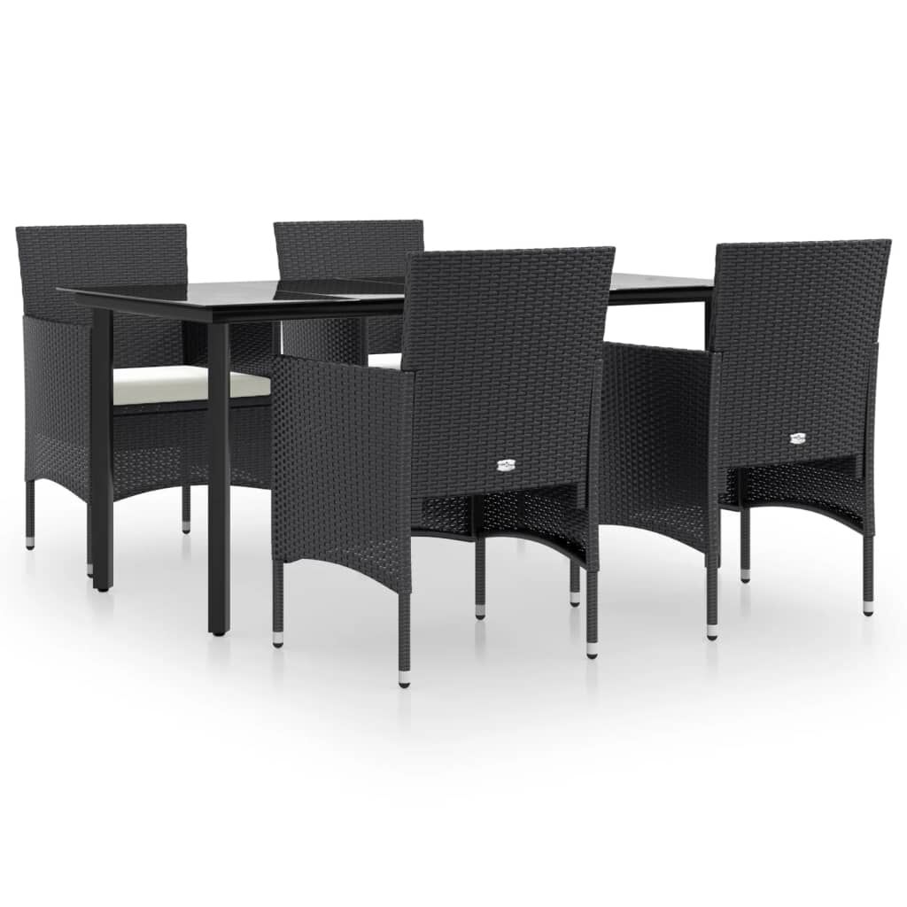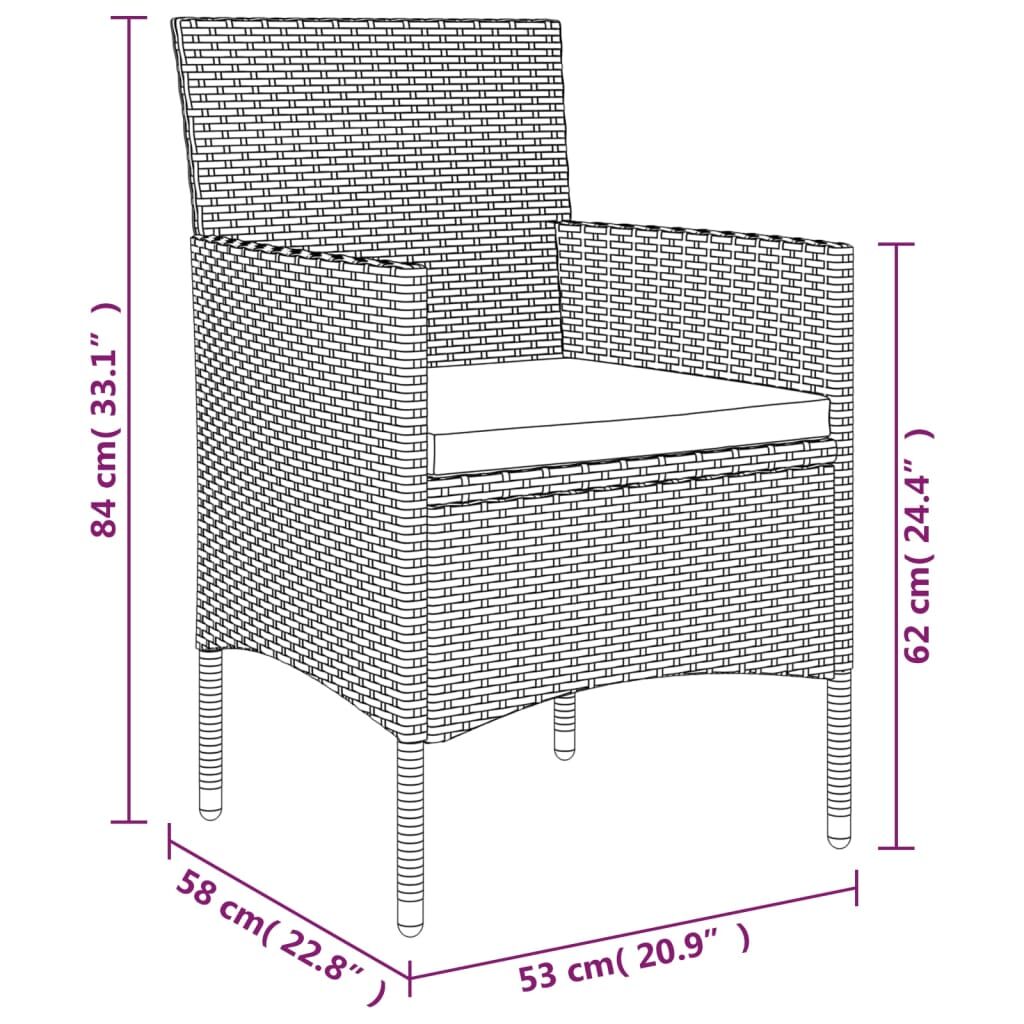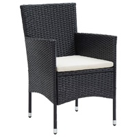 This garden dining set, with an elegant and contemporary design, is a great choice for dining or relaxing in the garden. Weather-resistant material: Made of weather-resistant and water-resistant PE rattan, this garden dining set is easy to clean, hard-wearing and suitable for daily use.Sturdy frame: The powder-coated steel frames make the outdoor dining set sturdy and stable for daily outdoor use.Practical tabletop: The smooth tabletop of the dining table is made of tempered glass which is easy to clean with a damp cloth. Additionally, the sturdy tabletop is perfect for placing meals, drinks, and other decorative items.Comfortable design: Designed with curved backrests and armrests, these outdoor chairs provide maximum comfort.Extra comfort: The thickly padded cushions provide ultimate comfort during your sitting time. Note:In order to extend the life of your outdoor furniture, we recommend you to protect it with a waterproof cover.Each product comes with an assembly manual in the box for easy assembly.