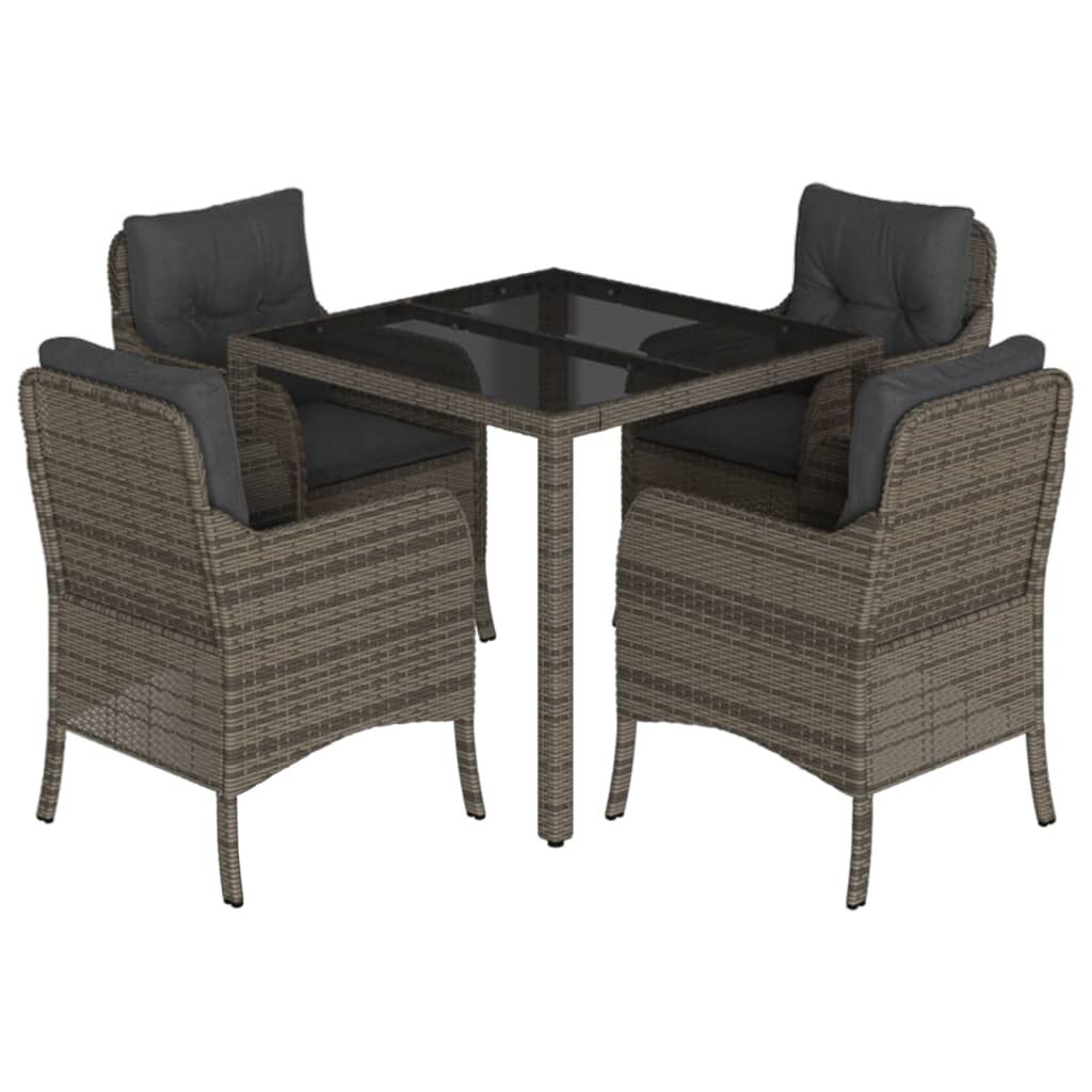 This garden dining set is a great choice for al fresco dining or just relaxing in the garden, backyard, or patio. Durable material: PE rattan, also known as poly rattan, is a strong, low-maintenance synthetic material that looks like natural rattan. It's lightweight, easy to clean, and commonly used for outdoor furniture due to its durability and weather-resistant properties.Comfortable seat experience: This outdoor furniture, complete with thickly padded cushions, offers a comfortable seating experience.Removable and washable cover: These seat cushions feature removable covers for easy washing and maintenance. The chair cushion covers have a flap at the back for easy attachment to the chairs.Glass tabletop: The outdoor table's top is made from strong and durable tempered glass, making it easy to clean with a damp cloth and adding a touch of elegance to your outdoor space.Robust and stable frame: The powder-coated steel frame ensures the garden furniture is strong and stable for daily outdoor use. Good to know:To make sure your outdoor furniture stays beautiful, we recommend protecting it with a waterproof cover.