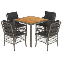 This garden dining set is a great choice for al fresco dining or just relaxing in the garden, backyard, or patio. Durable material: PE rattan, also known as poly rattan, is a strong, low-maintenance synthetic material that looks like natural rattan. It's lightweight, easy to clean, and commonly used for outdoor furniture due to its durability and weather-resistant properties.Comfortable seat experience: This outdoor furniture, complete with thickly padded cushions, offers a comfortable seating experience.Removable and washable cover: These seat cushions feature removable covers for easy washing and maintenance. Stable and easy-to-clean tabletop: This garden table has an acacia wood top that is sturdy, durable, and easy to clean with a damp cloth.Robust and stable frame: The powder-coated steel frame ensures the garden furniture is strong and stable for daily outdoor use. Good to know:To make sure your outdoor furniture stays beautiful, we recommend protecting it with a waterproof cover.