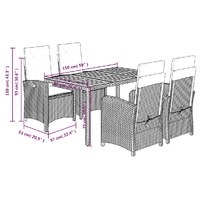 This garden dining set is a great choice for al fresco dining or just relaxing in the garden, backyard, or on the patio. Durable material: PE rattan, also known as poly rattan, is a strong, low-maintenance synthetic material that looks like natural rattan. It's lightweight, easy to clean, and commonly used for outdoor furniture due to its durability and weather-resistant properties.Adjustable backrest: This garden seat has a handle. You can adjust the backrest to any position by pulling the handle, and quickly return it to its original position.Comfortable seat experience: This outdoor furniture, complete with thickly padded cushions, offers a comfortable seating experience.Removable and washable cover: These seat cushions feature removable covers for easy washing and maintenance. The back cushions have a flap at the back for easy attachment to the backrests.Glass tabletop: The outdoor table's top is made from strong and durable tempered glass, making it easy to clean with a damp cloth and adding a touch of elegance to your outdoor space. Good to know:To make sure your outdoor furniture stays beautiful, we recommend protecting it with a waterproof cover.