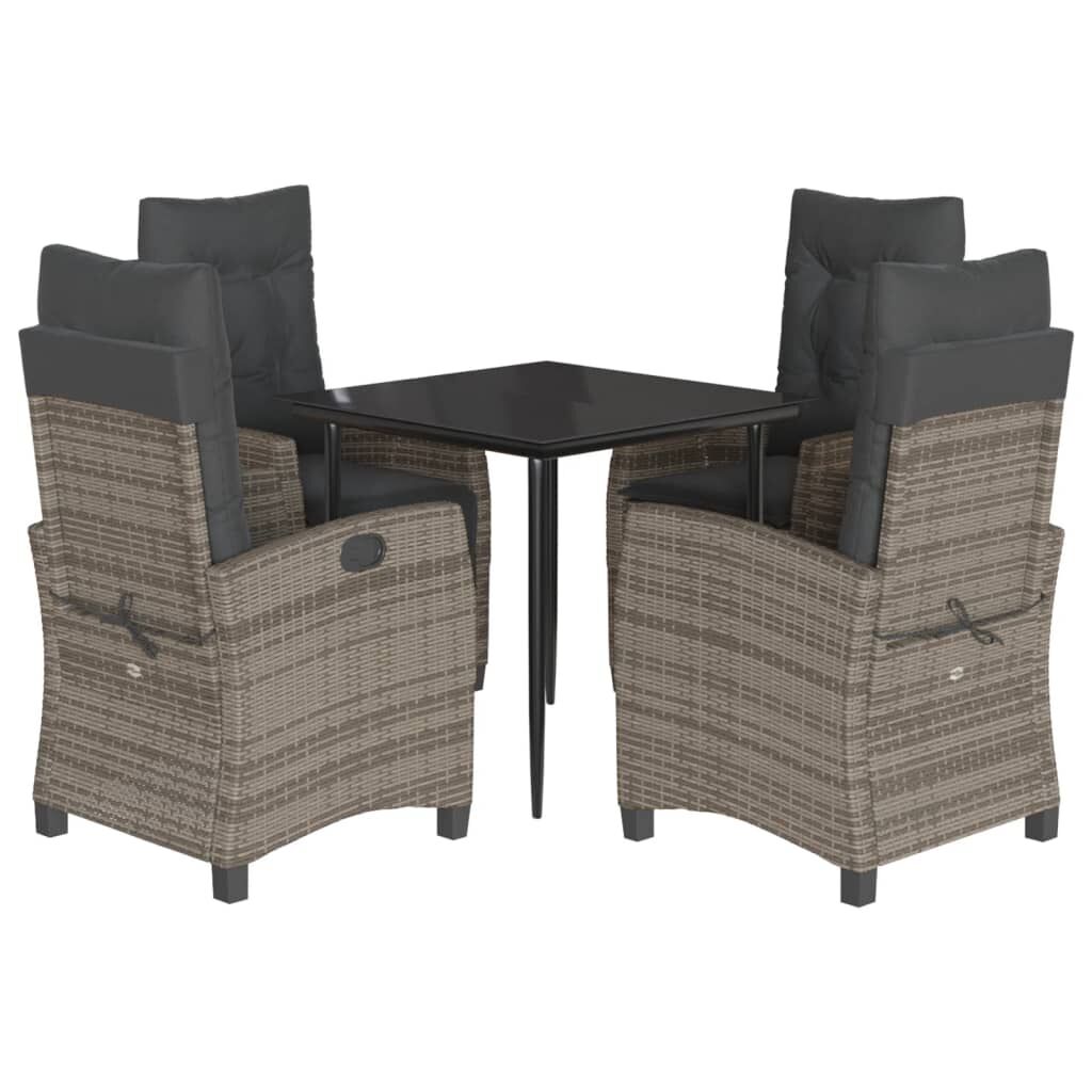 This garden dining set is a great choice for al fresco dining or just relaxing in the garden, backyard, or patio. Durable material: PE rattan, also known as poly rattan, is a strong, low-maintenance synthetic material that looks like natural rattan. It's lightweight, easy to clean, and commonly used for outdoor furniture due to its durability and weather-resistant properties. Adjustable backrest: This garden seat has a handle. You can adjust the backrest to any position by pulling the handle, and quickly return it to its original position.Glass tabletop: The outdoor table's top is made from strong and durable tempered glass, making it easy to clean with a damp cloth and adding a touch of elegance to your outdoor space. Comfortable seat experience: This outdoor furniture, complete with thickly padded cushions, offers a comfortable seating experience. Removable and washable cover: These seat cushions feature removable covers for easy washing and maintenance. Good to know:To make sure your outdoor furniture stays beautiful, we recommend protecting it with a waterproof cover.