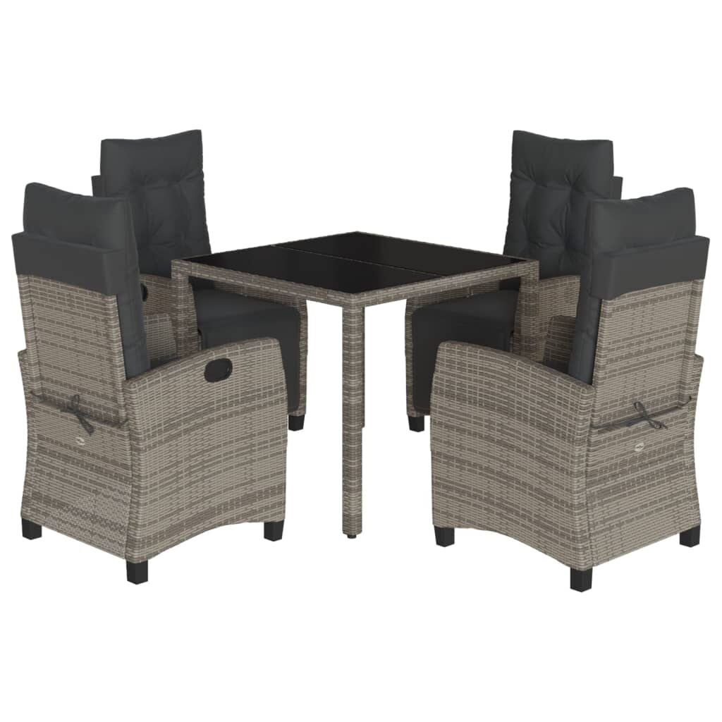 This garden dining set is a great choice for al fresco dining or just relaxing in the garden, backyard, or patio. Durable material: PE rattan, also known as poly rattan, is a strong, low-maintenance synthetic material that looks like natural rattan. It's lightweight, easy to clean, and commonly used for outdoor furniture due to its durability and weather-resistant properties.Adjustable backrest and footrest: This garden seat has a handle. You can adjust the backrest and footrest to any position by pulling the handle, and quickly return them to their original positions.Glass tabletop: The outdoor table's top is made from strong and durable tempered glass, making it easy to clean with a damp cloth and adding a touch of elegance to your outdoor space.Comfortable seat experience: This outdoor furniture, complete with thickly padded cushions, offers a comfortable seating experience.Removable and washable cover: These seat cushions feature removable covers for easy washing and maintenance. Good to know:To make sure your outdoor furniture stays beautiful, we recommend protecting it with a waterproof cover.